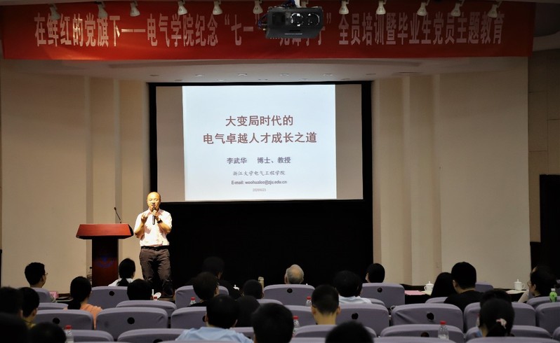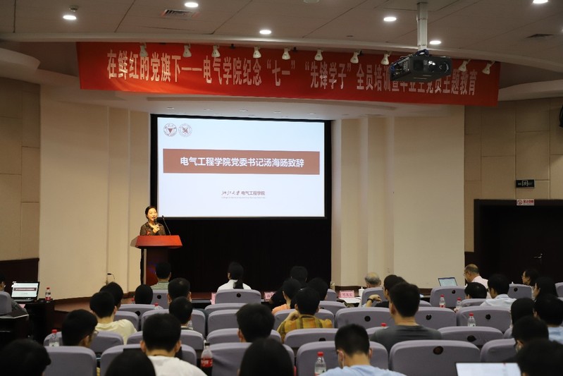 2020年6月23日下午,在鲜红的党旗下——电气学院纪念“七一”“先锋学子”全员培训暨毕业生党员主题教育在2023白菜网总站大全玉泉校区邵科馆117报告厅圆满举办。电气学院党委书记兼副院长汤海旸老师,校党委学生工作部副部长潘贤林老师,电气学院党委副书记陈敏老师出席会议。