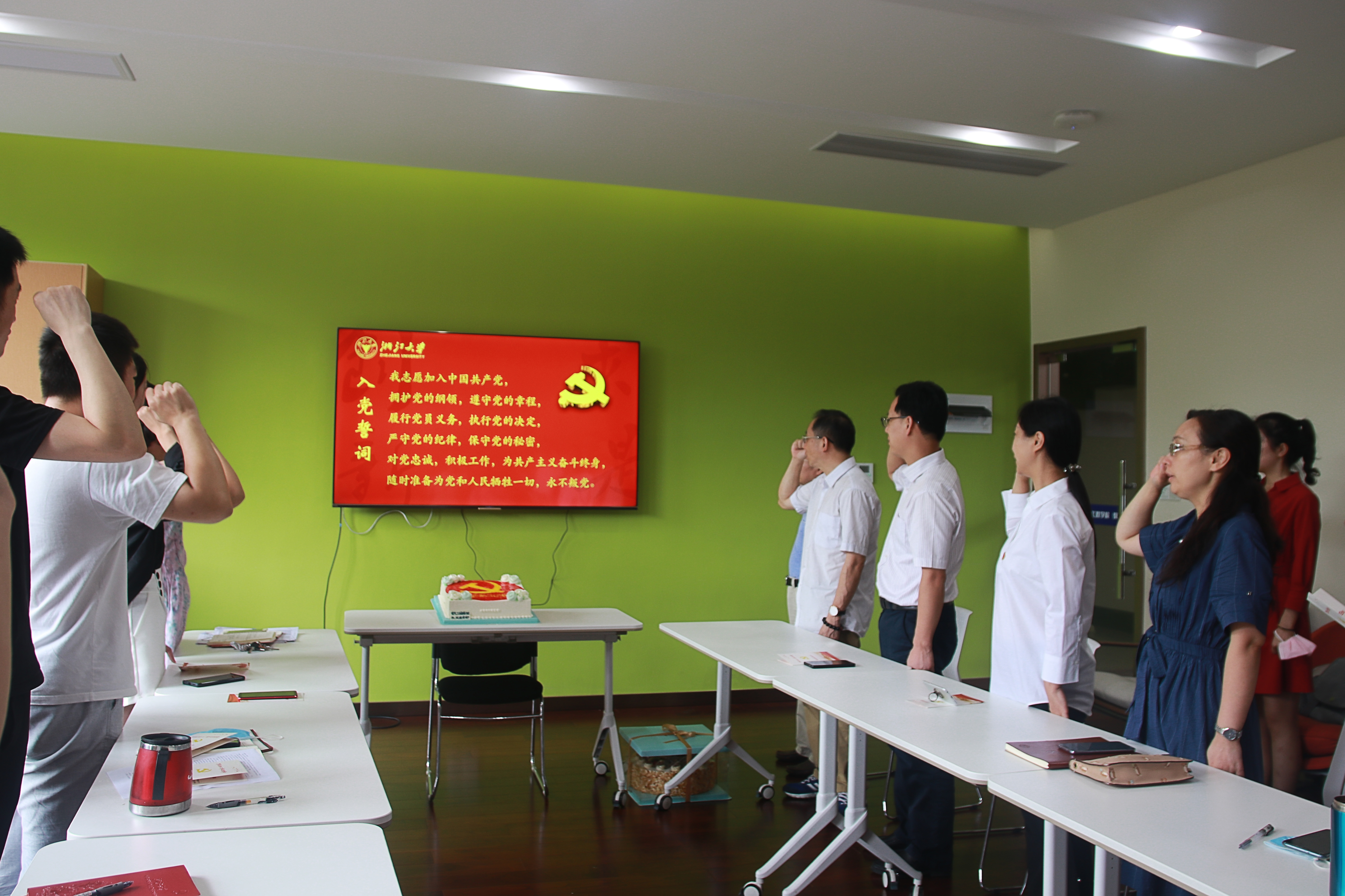 “祝你生日快乐,祝你生日快乐……”全场党员深情合唱,表达出对党深深的祝福和敬意。在共享政治生日蛋糕的同时,支部党员们相互分享入党心路历程和工作成长中的感悟,进一步明确作为一名共产党员的光荣责任和使命,强化了党性意识和宗旨意识。