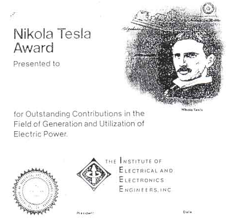 IEEE尼古拉特斯拉奖(IEEE NIKOLA TESLA AWARD)设立于1975年,以享誉世界的电磁学奠基人尼古拉·特斯拉命名,表彰在发电和用电领域做出杰出贡献的专家学者。该奖项每年全球评选一次,仅授予个人或不超三个人的团队,并公布下一年度的获奖者。