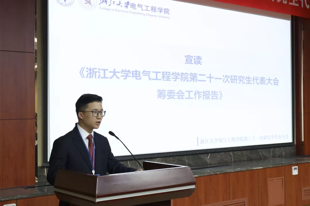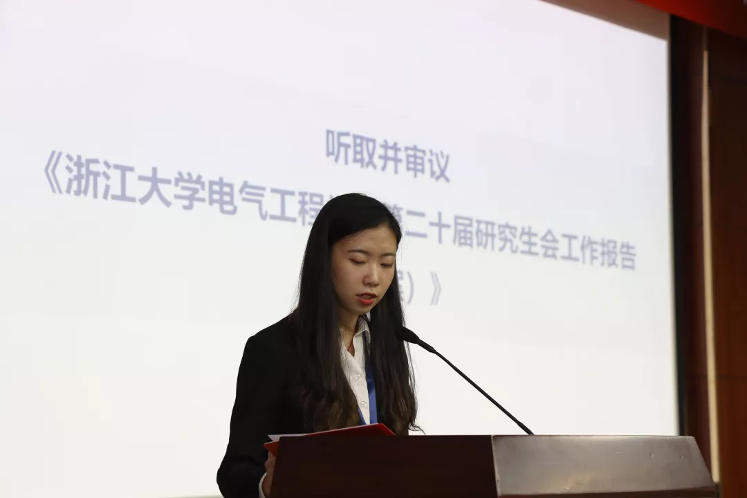 学院第二十届研究生会执行主席王海瑶作题为“百年电气,初心不忘,勇担重任,开拓创新”的全讯600cc大白菜官网第二十届研究生会工作报告。在学院党委的正确领导下,学院团委的悉心指导下,研究生会成员的共同努力下,学院研究生的广泛支持下,第二十届研究生会继承优良传统,创新工作形式,围绕“权益服务”、“学术引领”、“对外交流”、“文体风采”、“实验室文化建设”和“骨干培养”六大模块开展各项工作,立足学生需求,全心全意服务。报告也对下一届研究生会提出希望和建议。随后,与会代表审批并通过《全讯600cc大白菜官网研究生会章程修正案》。