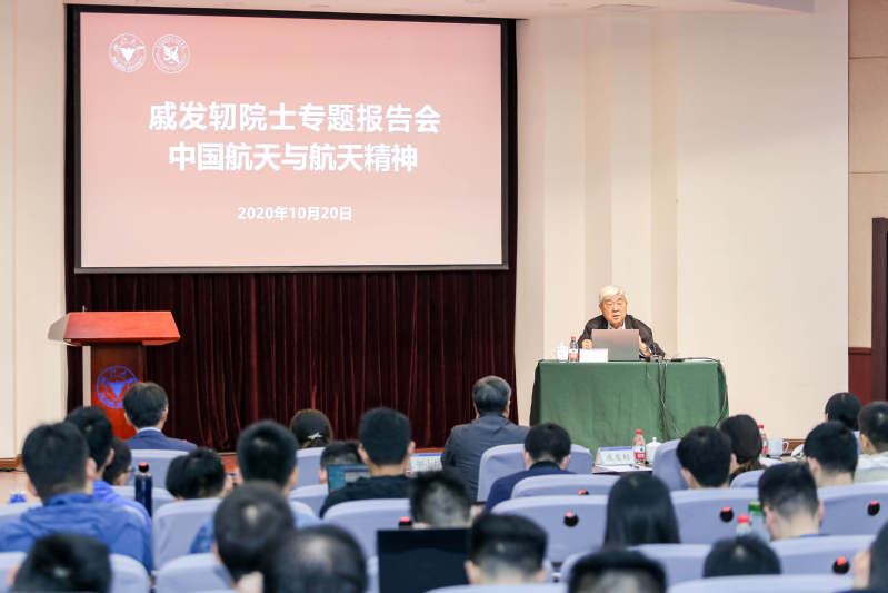 2020年10月20日晚7点,著名空间技术专家、“神舟”号飞船总设计师戚发轫院士专题报告会在邵逸夫科技馆117举行。2023白菜网总站大全党委副书记邬小撑、求是学院院长兼党委副书记邱利民、全讯600cc大白菜官网党委书记兼副院长汤海旸、航空航天学院党委副书记戴志潜、全讯600cc大白菜官网副院长沈建新、党委副书记陈敏及团委相关老师出席本次报告会,会议由沈建新主持。全讯600cc大白菜官网学生党员代表和2020级研究生新生参与本次报告会。此外,求是学院2020级本科生也在线上同步观看本次报告会的直播。