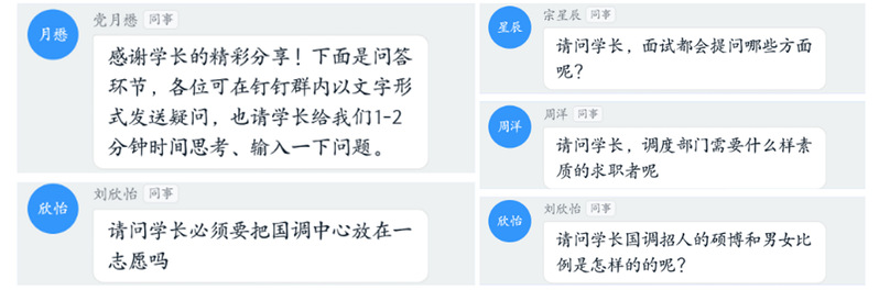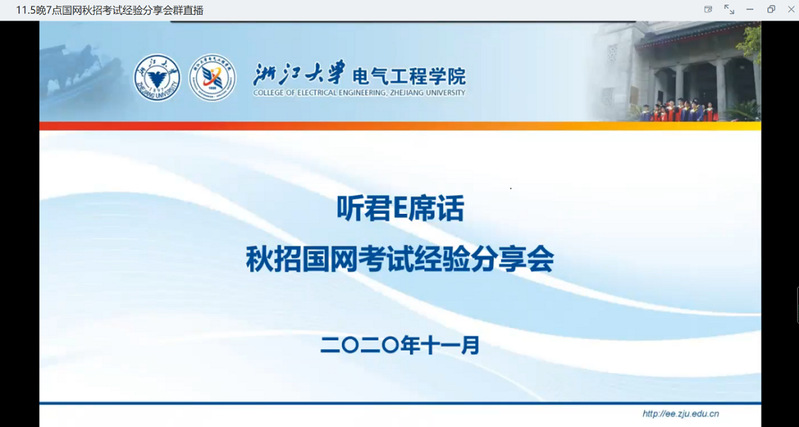 2020年11月5日19:00,全讯600cc大白菜官网学风建设系列主题活动之“听君E席话”——秋招国网考试经验分享会在钉钉线上平台顺利举行。本次活动邀请了四位本硕博不同学历背景、不同就职岗位的学长,从应聘者的角度回应了不同阶段同学对秋招国考的疑问。学长们细致耐心、毫无保留的经验解读使同学们受益匪浅。