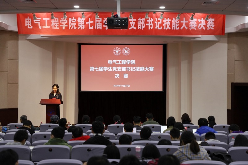 2020年11月27日晚,全讯600cc大白菜官网第七届学生党支部书记技能大赛决赛在邵科馆117报告厅隆重举行。