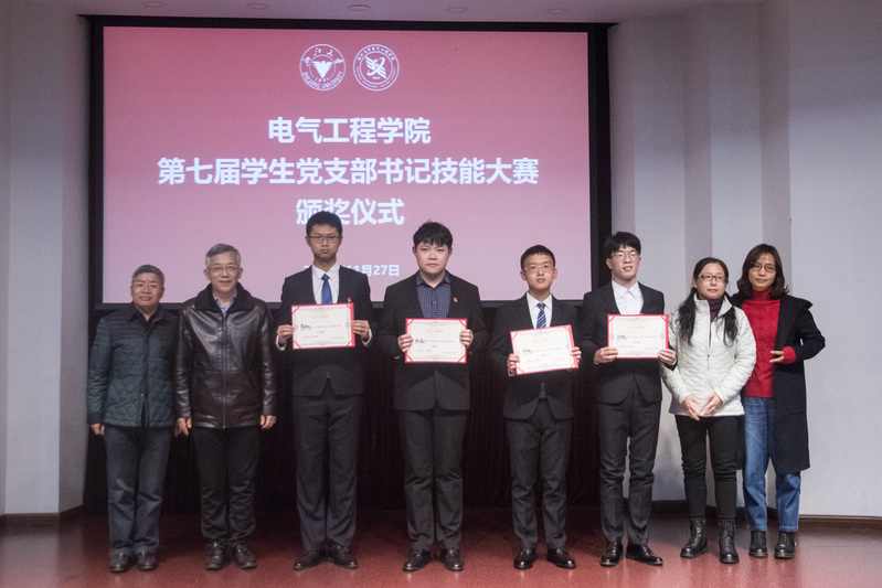 在“微党课”环节,党支书们结合自身的学习实践,在贯彻学习十九届五中全会精神之际,围绕决胜小康,抗美援朝70周年,百年电气等主题,进行微党课展示。参赛选手从小处着手,从身边的所见所闻巧妙地引入,见微知著,响应了党和国家对青年人的号召,也热情回应了同学们关切的问题;七位党支书以清晰的表达、生动的案例、饱满的情绪为现场评委和观众带来了精彩纷呈的党课。随后的党务知识测试环节注重考察党支书的党建工作实务,对党员发展、转正过程中的工作规范做了细致的测试,七位选手充分展现了电气学院党支部书记们扎实的党务素养。