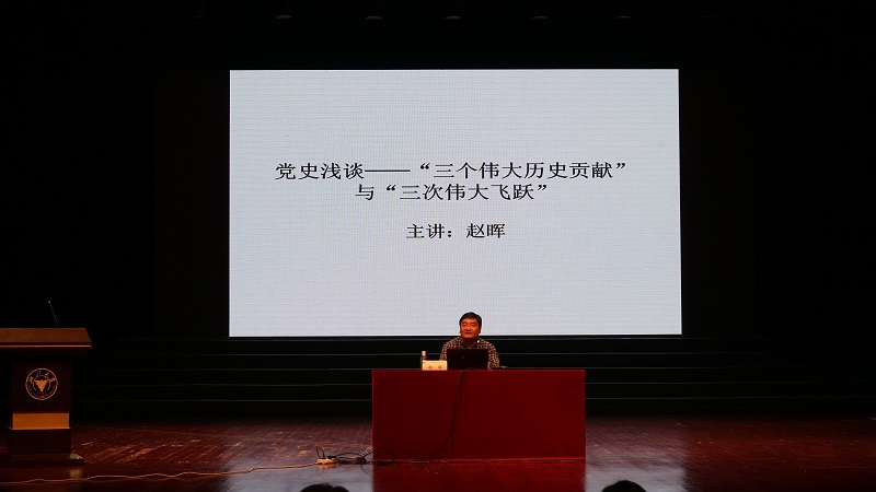 赵晖老师在报告中就毛泽东思想的产生、成熟与新民主主义革命胜利、中国进入社会主义及其发展、中国特色社会主义道路的开辟三次伟大飞跃及其中党的伟大历史贡献进行了生动讲解。结合人物日记、回忆录等鲜活多样的史料文献,系统梳理党史发展脉络的同时,回顾了很多关键的历史细节,引发了在场师生党员的强烈共鸣和深入思考。最后赵老师针对当前国家发展面临的机遇和挑战,指出中国共产党带领中国人民总结经验、把握规律、开拓发展,为实现中华民族伟大复兴接续奋斗。