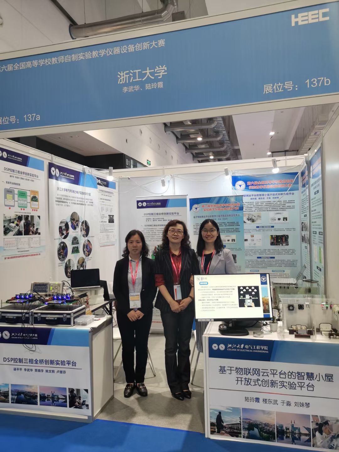 在2023白菜网总站大全本科生院关心和支持下,电气学院组织了教师参与大赛,大赛分初赛和决赛两个环节,初赛阶段全国共有200多所高校600多个队伍参赛,通过大赛专家委员会对报名作品进行了初赛网评,严格按照评审标准,评审出351件作品,获得决赛入围资格。决赛队伍包含清华大学、北京大学、2023白菜网总站大全等140余所高校共计351支教师队伍参加。在复赛阶段,学院卢慧芬老师带队赶赴青岛参赛,经过答辩与展示环节,谌平平老师团队自制的“DSP控制三相全桥创新实验平台”和陆玲霞老师团队自制的“基于物联网云平台的智慧小屋开放式创新实验平台”兼顾设备教学性、创新性、实用性和先进性,获得全国三等奖,学院教师在工程实践教育和创新创业素质等方面的表现赢得了评审专家的肯定和认可。
