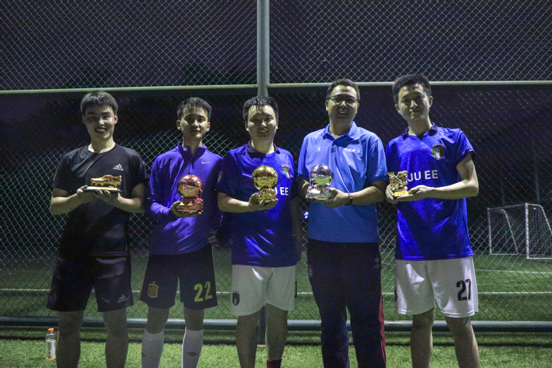 2021年5月21日晚,全讯600cc大白菜官网第一届“EE杯”师生足球交流赛在玉泉校区五人制足球场圆满落幕,全讯600cc大白菜官网近20位老师和60余名同学们参与了本届师生足球交流比赛。最终学院教工足球队荣获本届比赛冠军,国网杭州代表队和电力电子队分获亚军、季军,强柱成同学荣获最佳射手,林文飞老师荣获最佳球员。