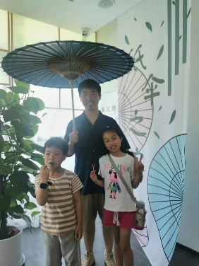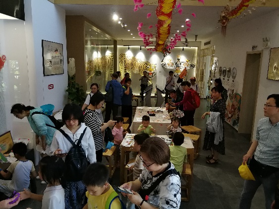 完成健步走,大家来到瓶窑老街。在建设新农村的过程中,老街也见证了古老向现代的进程。街头建有了极具现代感的非遗展览馆,还有风筝灯彩馆、油纸伞馆、玉雕馆等。风筝馆里大到巨龙小到沙燕的风筝款式、油纸伞馆展示了传统的制作工艺制作纸伞的全过程,让大小朋友们流连忘返。