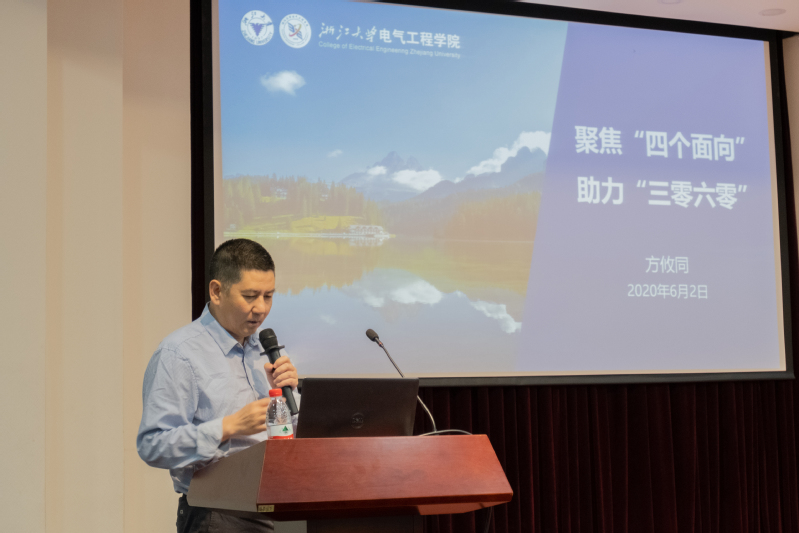 随后,方攸同教授以《聚焦四个面向,以再电力化助力双碳》为主题进行了报告。他表示,对于习总书记提出的“三零六零”计划,电机学科与电机行业实现双碳主要聚焦以下四个方面:一、建设绿色电机制造企业,二、进一步提升电机的效率和品质,三、努力攻克制约新能源生产与消纳的电机难题,四、实现再电气化。他提到,新能源和再电气化给电机行业提出了新的要求,特别是其非平稳的工作模式给电机的分析、设计、制造和运行维护提出了新的挑战。方攸同教授的报告为同学们今后的研究提供了灵感、指明了方向。