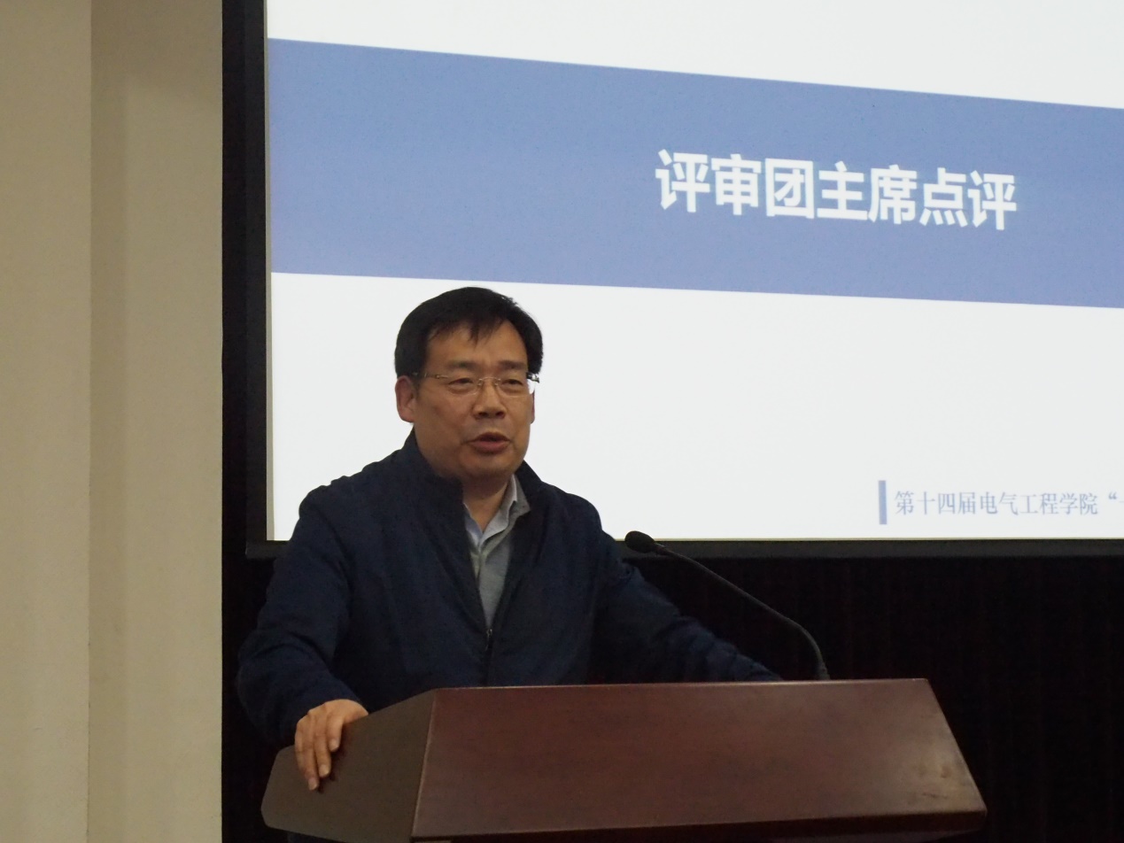 在二十位候选人风采展示阶段结束后,赵荣祥老师作为评审团代表为本届“十佳学子”候选人答辩环节做了总结。他首先高度赞扬了本次二十位候选人的展示成果,不仅仅对各位候选人的学术科研素养进行了表扬,也特别对他们的社会实践,学生工作等表示了赞赏。此外,老师还着重强调了电气学院的课程对电气学子的性格塑造和人生的影响,期望电气师生间的交流可以更加深入。最后,他提出:如今的时代是一个急需创新的时代,广大学子要将自己的发展和国家的命运结合在一起,努力创新,奉献社会。