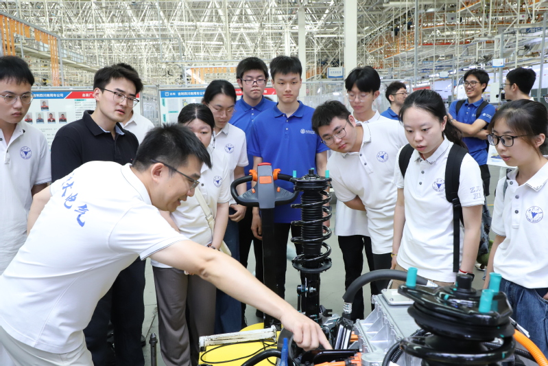 晏紫微:吉利汽车的总装配车间让我印象深刻,负责人带我们看了汽车中电机、电驱、电控的结构,阐述了各部分协调运作的过程,平时在课本、仿真中学的知识以实物的形式展示在我面前,不仅让我对控制过程有了更实际的理解,也对我之后的学习和探索产生影响,要让科研落到实处,解决产业中真正亟待解决的问题。
