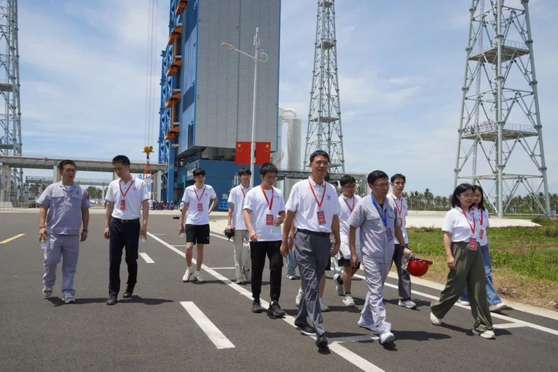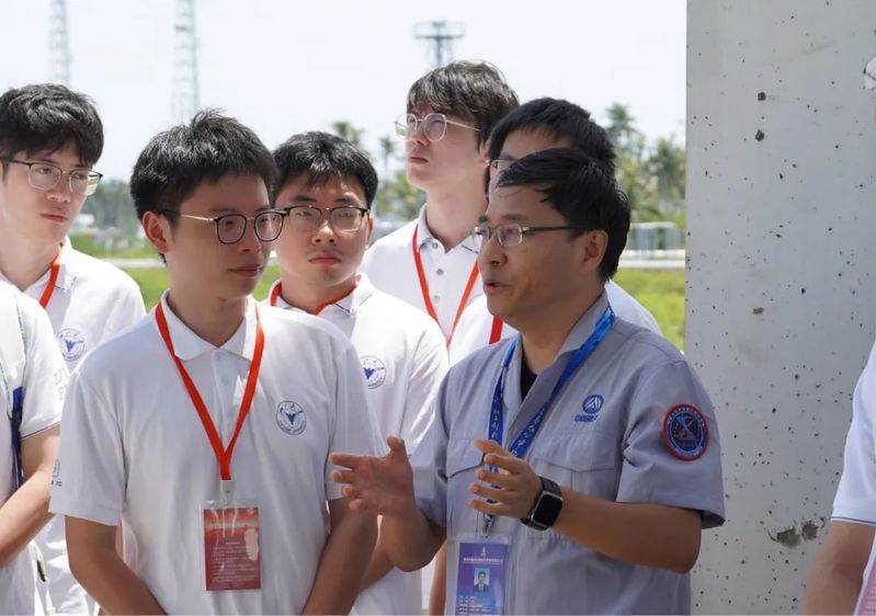 “长征八号系列火箭的设计,既要保证飞行可靠性,又要降低成本,同时提升运载效率,这就是我们追求的'多目标优化'和‘性价比’突破,也是长征火箭推动商业航天发展的最佳实践。”在正在组装的火箭旁,从箭体轻量化设计的结构与材料创新、到发动机推力调节的技术密码,从火箭回收技术的迭代逻辑,到有效载荷比提升的优化路径,结合国际商业航天发展的最新动态,他深入浅出地分析:“航天是国家实力的重要标志,既要追赶前沿,更要扎根自主创新。”这堂没有黑板的课,让同学们在塔架之下,搭建起知识与行业前沿的桥梁。