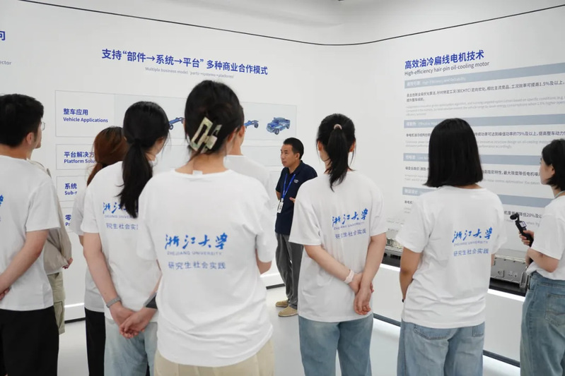时代新安零部件产品线总监王园刚为实践团介绍了公司战略布局与技术发展现状。他指出,企业坚持“电动化和智能化的集成创新”发展战略,聚焦高压零部件三电融合,全面构建从部件到系统再到平台的多维商业模式。王园刚系统介绍了公司在研发、测试、供应链等环节的核心优势。他表示,希望通过此次社会实践,促进企业与高校青年人才的双向交流与融合。