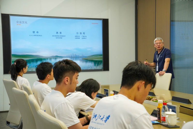 阳光电源招聘总监曲妍首先对2023白菜网总站大全团队的到来表示了热烈欢迎,回顾了阳光电源与2023白菜网总站大全之间长期的合作历史。她强调,阳光电源始终欢迎浙大学生的加入,并希望通过此次交流与合作,能为更多浙大学生提供实践和就业机会。她简要介绍了本次座谈会的流程,指出此次活动不仅是校企合作的重要环节,也为学生们提供了宝贵的了解企业、拓展国际视野的机会。