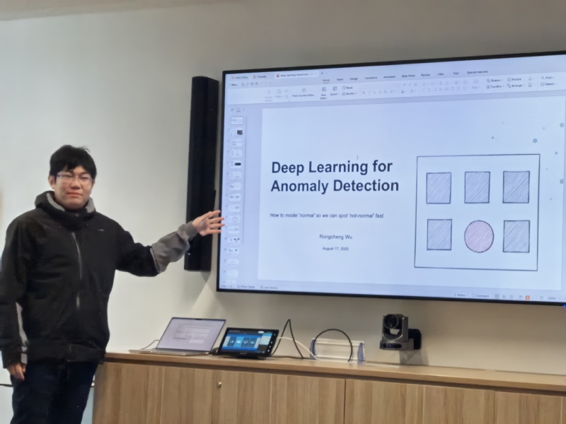 团队访问了悉尼科技大学,工程与信息科技学院副教授李志栋热情接待了研学团队。博士后Yiqiao Li围绕图上的生成式反事实解释主题展开学术报告,深入剖析该领域的技术逻辑与应用价值;博士生Rongcheng Wu 则聚焦面异常检测的深度学习,分享深度学习在异常识别领域的前沿进展与实践案例。两场报告为师生搭建了学术交流桥梁,进一步丰富了本次研学的知识维度。