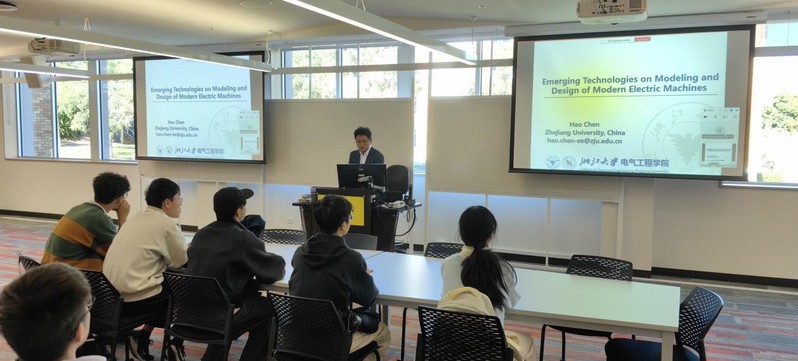 团队访问了新南威尔士大学,电气工程与通信学院John Fletcher教授、Clay Chu研究员、Felipe Arrano-Vargas老师接待了师生一行。Clay Chu研究员首先带领团队参观了专业实验室,让师生们近距离接触前沿科研设施,直观感受学校的科研环境与实践氛围。随后,Felipe Arrano-Vargas老师围绕 “虚拟电网” 主题开展学术报告,系统讲解虚拟电网领域的技术现状、发展趋势及应用场景;研学团队带队老师陈浩老师则聚焦电机领域的多个研究方向,深入阐述相关技术突破与未来探索重点。双方的学术互动有效增进了彼此在专业领域的认知与交流,为本次研学活动注入更多专业价值。