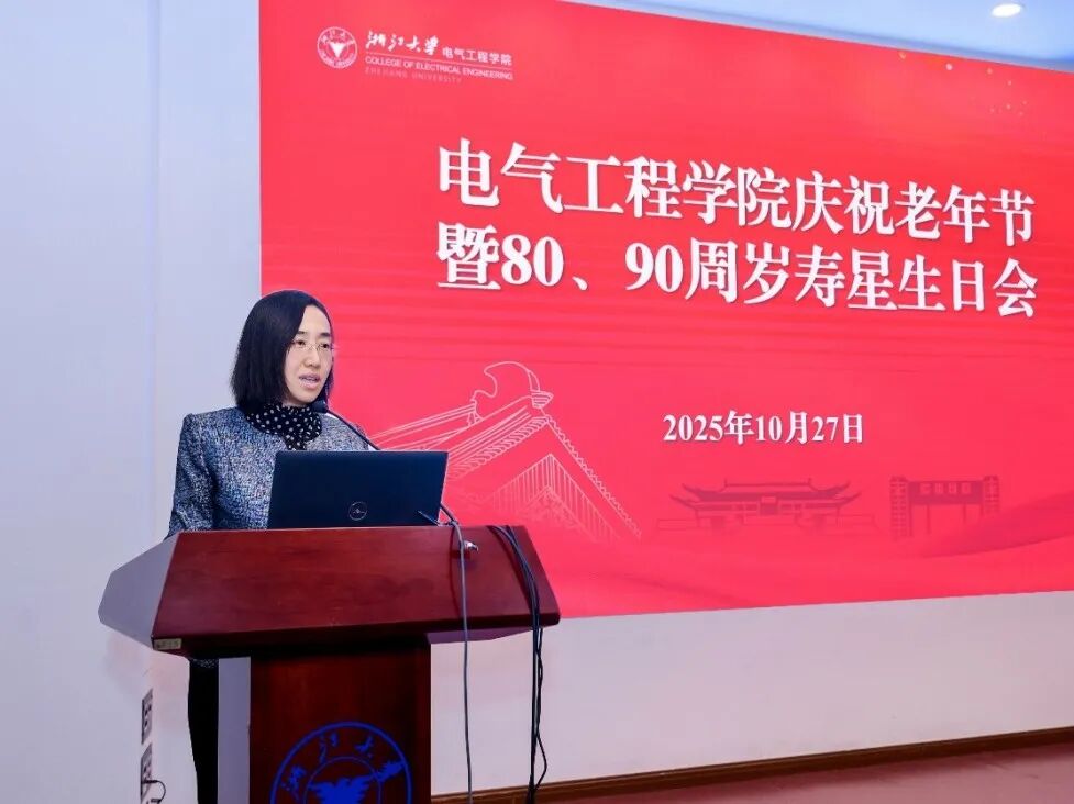 李虹在报告中向各位寿星、全体老同志致以最衷心的感谢和最诚挚的祝福,并介绍了学院近年来的发展状况和成果,以及学院未来发展计划。她表示,学院发展成绩的取得,凝结着全院师生的智慧与汗水,更离不开各位老领导、老教师打下的坚实基础和长期以来的殷切关怀与大力支持。她强调,学院当前正处在谋划“十五五”发展规划的关键时期,全院上下正凝心聚力,为将学院建设中国特色世界一流电气工程学科而奋力前行。学院将始终铭记老同志们的贡献,尽全力做好服务保障工作,让大家能够安享幸福生活。