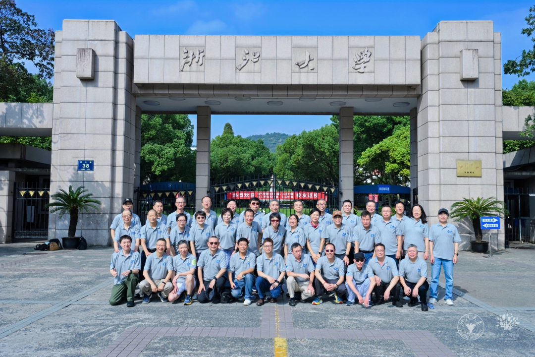 求是大讲堂前的集体合影。荣棣之华,四秩怀思,每一个笑脸在阳光下熠熠生辉,同学们笑容中满是骄傲与感动。