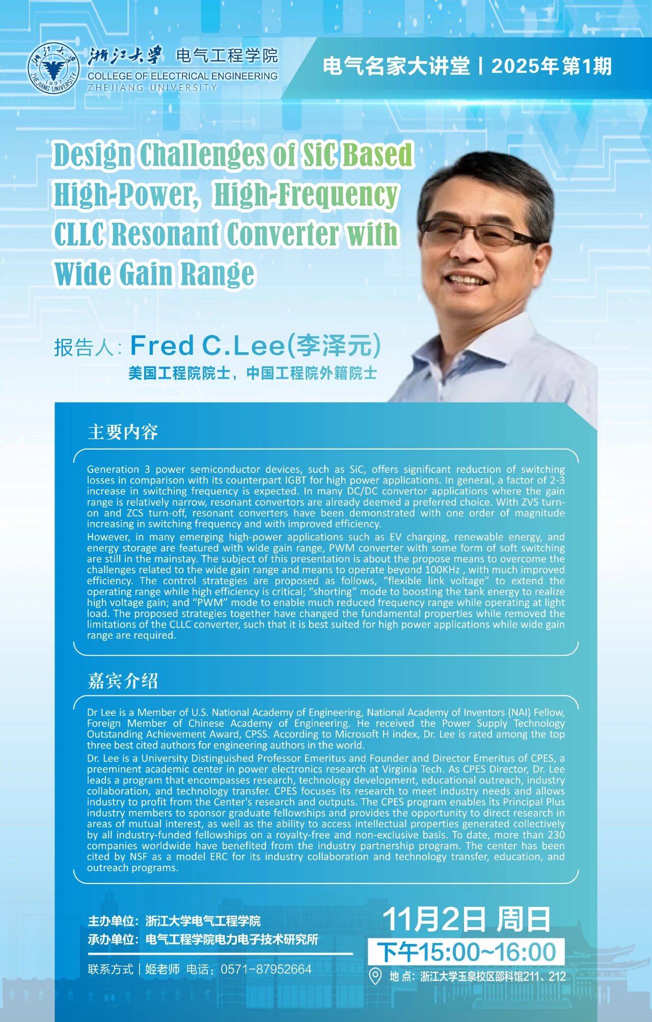 电气名家大讲堂No.1|美国工程院院士Fred C. Lee(李泽元)教授学术报告